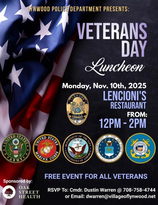 RSVP To: Cmdr. Dustin Warren @ 708-758-4744 or Email: dwarren@villageoflynwood.net